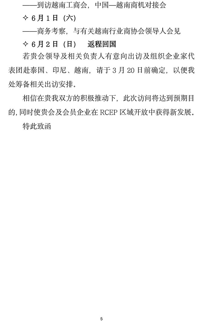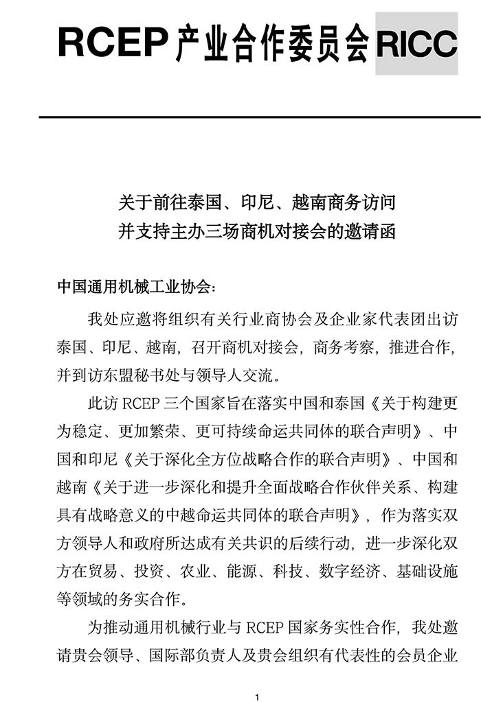 致:中国通用机械工业协会——关于前往泰国、印尼、越南商务访问的邀请函(5.25-6.2)
