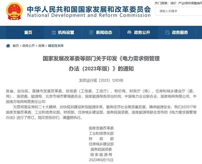 近日,国家发改委、国家能源局近日联合发布了新修订的《电力负荷管理办法(2023年版)》(简称《办法》);国家发改委、国家能源局、工业和信息化部、财政部、住房和城乡建设部、国务院国资委近日联合发布了新修订的《电力需求侧管理办法(2023年版)》(简称《办法》)。