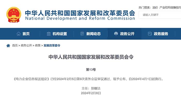 近日,国家发改委发布《电力企业信息报送规定》,文件规定:从事输电业务、供电业务的企业应当报送输电成本构成及其变动情况、供电成本构成及其变动情况等。原文如下: