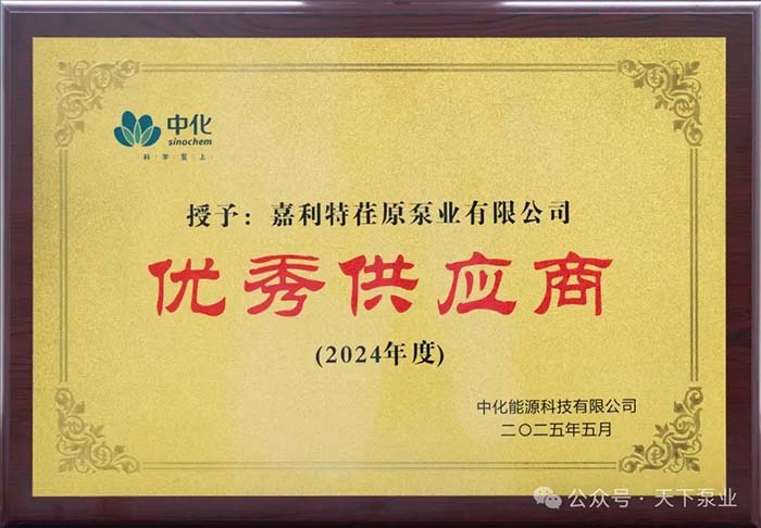 5月22日,嘉利特荏原受邀参加2025年中化能源绿色供应链协同发展峰会(以下简称峰会),被授予“2024年度优秀供应商”荣誉称号。嘉利特荏原与中化能源公司自2012年开始合作至今,提供了167台(套)机组产品,合同总金额达1.38亿元,凭借良好的产品品质和及时高效的售后服务,获得业主好评。