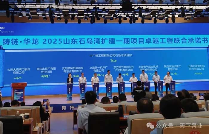5月27 日,中广核工程有限公司(简称“中广核”)2025 年华龙项目群设备保供动员会在深圳召开,重泵公司副总经理何智奎出席会议,并代表公司向客户郑重承诺:同心守护质量,同行再创标杆,打好华龙批量化项目综合创优攻坚战。
