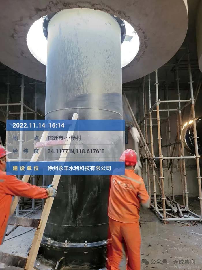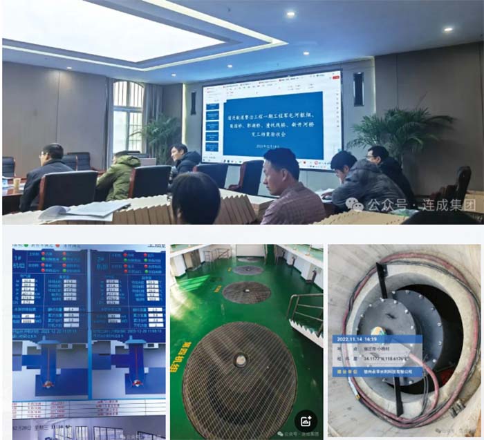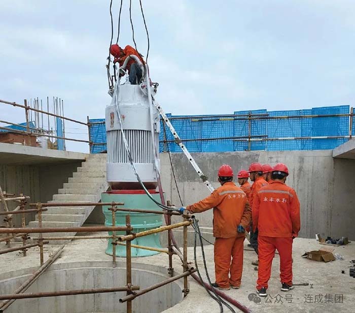 此次抗旱行动中,枣林船闸泵站补水的成功实现是宿迁交通系统泵站运行的“首秀”,本次投入运行的1000QH-50型混流泵机组是我集团公司的拳头产品,其单台额定流量达2.73m³/s(9810m³/h),配套450kW 10kV高压潜水电机,承担了艰巨的补水任务。面对高压供电、机组调试等技术难题,连成机组以高效稳定、强抗负荷的特性,在专家团队的精准操作下一次性启动成功,并持续满负荷运行12小时无故障,展现出卓越的性能和可靠性。