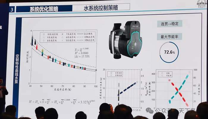 哈工大建筑学院倪龙教授在其户式热泵系统研究中,将新沪GPA H热泵选为“研究专用泵”。其突破性结论表明:采用新沪定制特性曲线水泵可实现自适应流量调节,显著简化系统、提升稳定性,最大节能率高达72.6%。这一成果在2023年热泵行业年会主题演讲中发布,引发业界强烈反响。