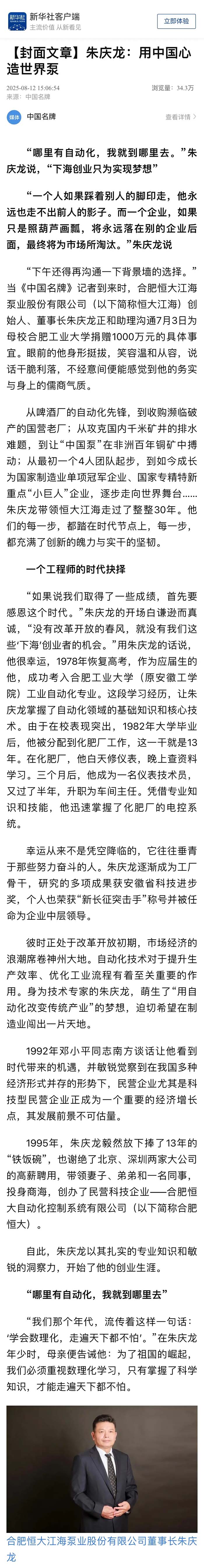 新华社【封面文章】朱庆龙:用中国心造世界泵