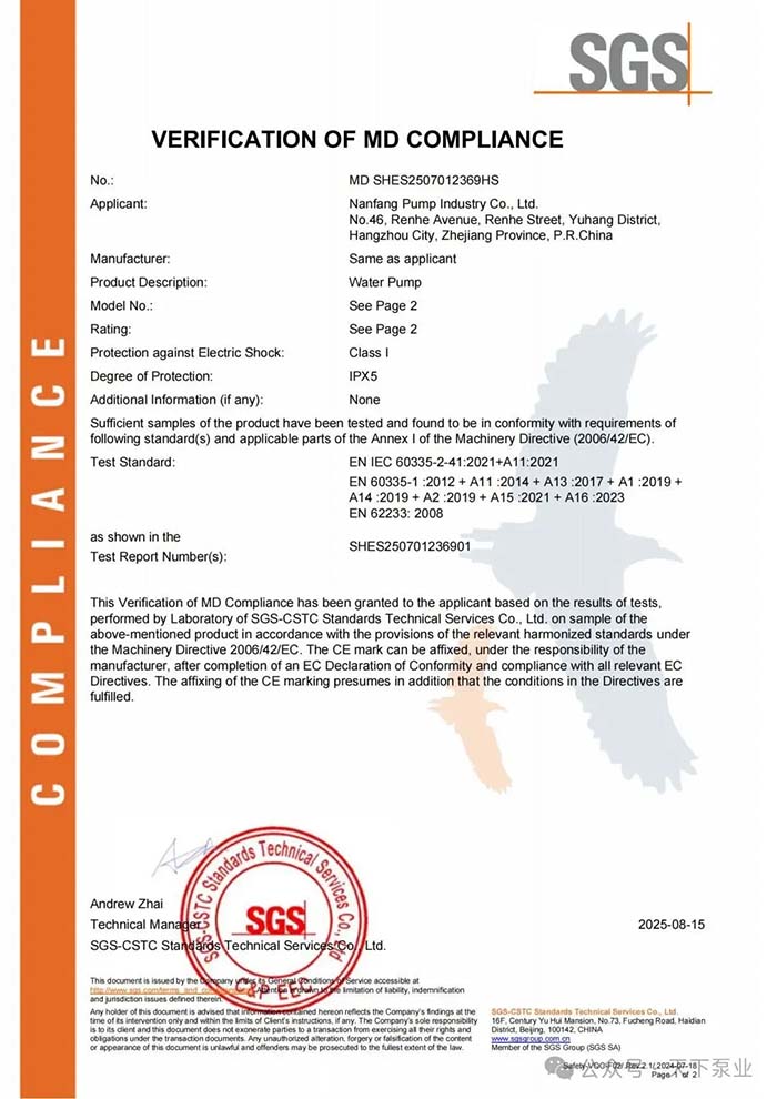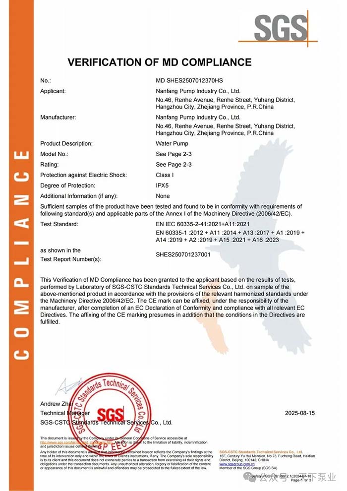 此次CE认证的获得,是对南方欧科技术实力与质量管控能力的权威认可,更是全球市场布局的重要机遇。未来,南方泵业旗下南方欧科将继续以合规为基石、以技术为驱动,持续提升产品性能,为欧洲及全球市场提供更贴合本地需求的产品与服务。