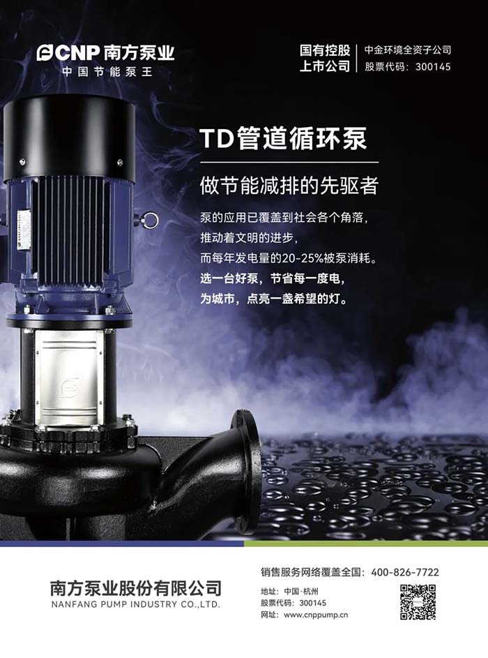 TD管道循环泵,将节能高效的理念融入从设计、生产到使用、运维的各个环节,为建设低碳未来提供可靠助力。南方泵业,将持续朝着“节能化、系统化、智能化”的路径创新变革,打造领军产品及专业化的行业解决方案,让中国节能方案润泽世界。