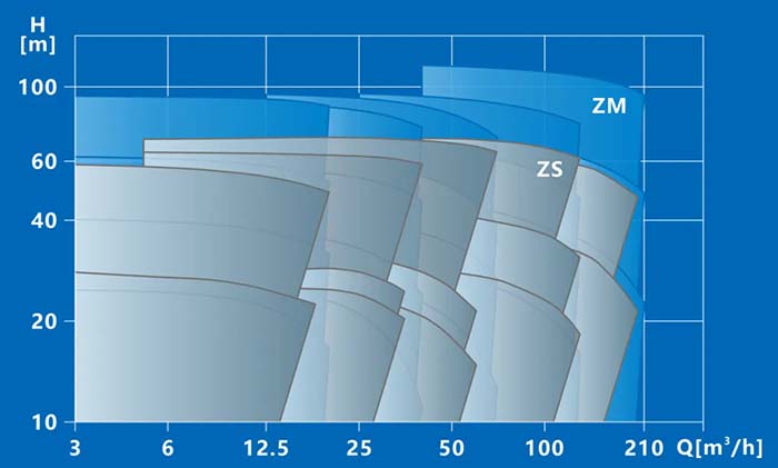 新一代ZM系列不锈钢卧式单级离心泵拥有更宽、更广的流量扬程覆盖范围,型号扩充42%,由原来的35个型号增加至50个型号;最高扬程提升48%,由原来的75米提升至104米;最大流量扩大5%,由200m³/h扩大至210m³/h。