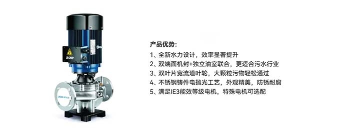 GW立式管道排污泵增补GWF不锈钢管道排污泵,主要应用于工业废水的输送、生活污水处理系统、城市污水处理系统以及市政排污系统等领域。目前已完成11kW以下66个型号开发,口径覆盖DN32-DN150,额定流量覆盖8-180m³/h,过流部件可选用铸铁或不锈钢材质,部分特殊型号可通过切割叶轮定制。