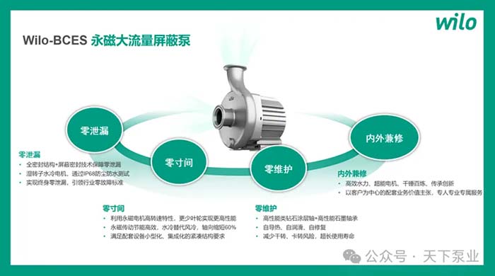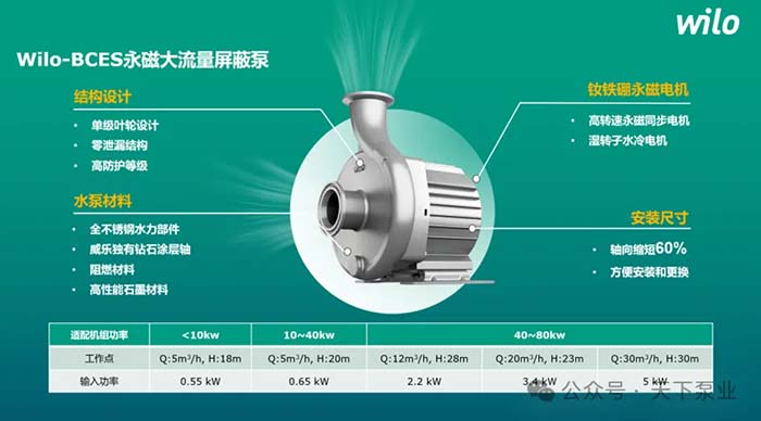为应对储能温控行业较为严苛的应用场景的需求,威乐与战略合作客户进行联合产品研发,针对高盐雾、高海拔、高粉尘、高湿度以及狭小安装空间等常见储能设备的应用场景,设计推出“零泄漏”产品Wilo-BCES系列永磁大流量屏蔽泵。