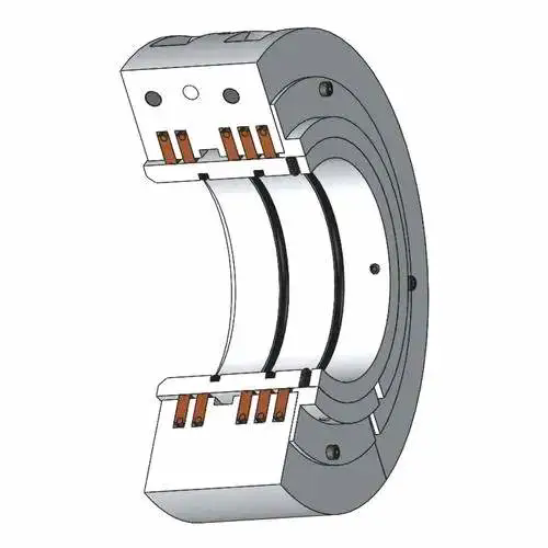 碳环密封结构有很多种,根据使用工况条件来决定其结构。根据结构可分为剖分式与非剖分式结构;根据安装位置可分为内置式和外置式;根据工况条件分可以分为有气阻抗、油阻抗和没阻抗结构。碳环密封组件包括环形密封腔体和轴套、石墨密封环。