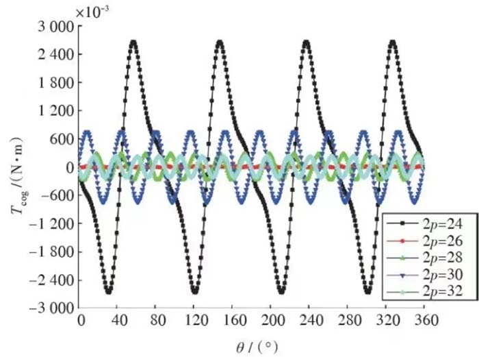 不同极数齿槽转矩