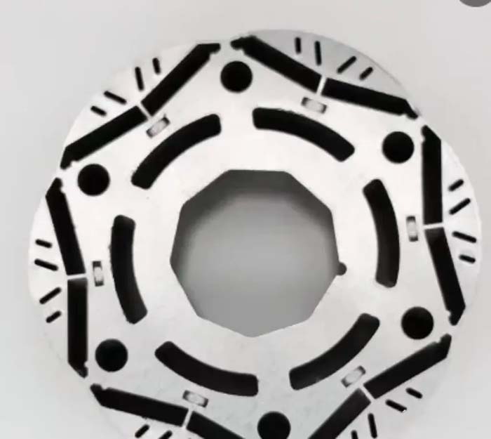 转子错极结构 磁极偏移 磁极偏移与转子磁极分段错位类似,对于2p个磁极才能够原来均布位置改为圆周方向偏移,这样相当于在一个基波齿槽周期内有分段磁极2p段,除了2p次及其倍数次谐波外,其他齿槽转矩都得到削弱。但是,磁极偏移会引入转子不平衡磁拉力问题。例如,对于4极24槽电机,采用磁极偏移方法后,齿槽转矩从0.2Nm降低至0.02Nm。笔者曾经拆解过瑞诺的伺服电机,该电机就是采用的磁极偏移的方式来降低齿槽转矩。