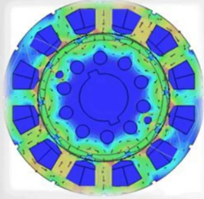 通常设计电机定转子之间气隙是均匀的,磁体下的气隙磁密分布会更接近于梯形波,有较多谐波。如果改为不等气隙,即磁体中央处气隙小,在极尖处有较大气隙,使磁体下的气隙磁通密度分布接近正弦波,有利于降低齿槽转矩。